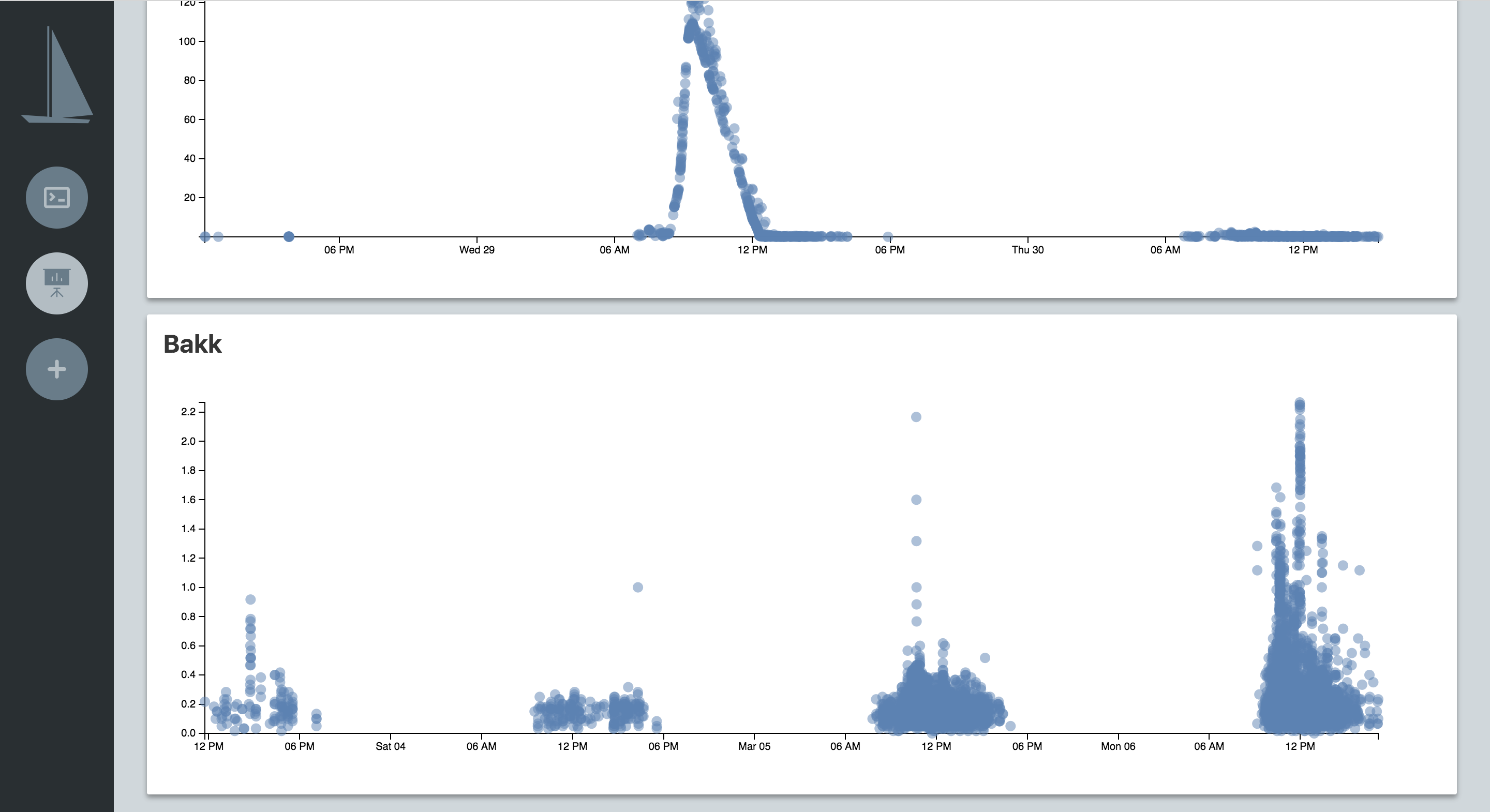 Additionally, it provides a way to bundle multiple queries together in the form of a "board". Boards can display results as classical tables or more visual ways like scatter plots.